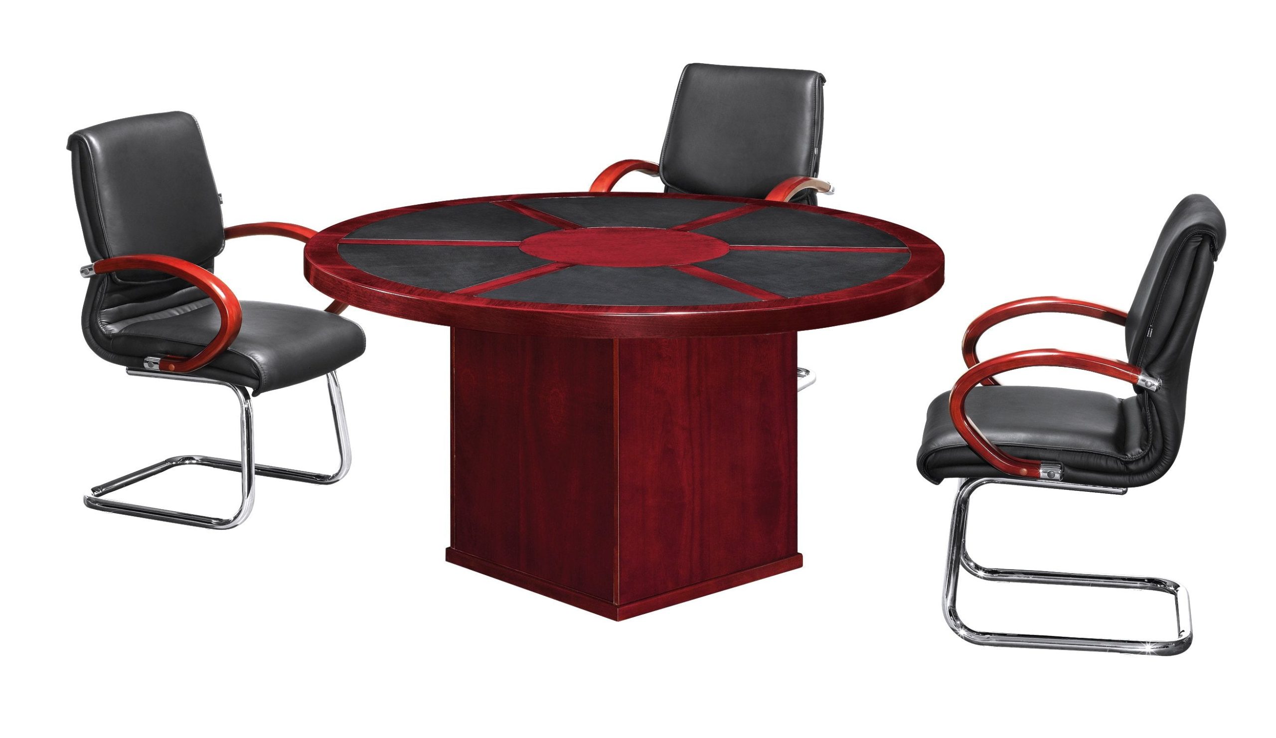 Round Conference Table with Leather Inlay